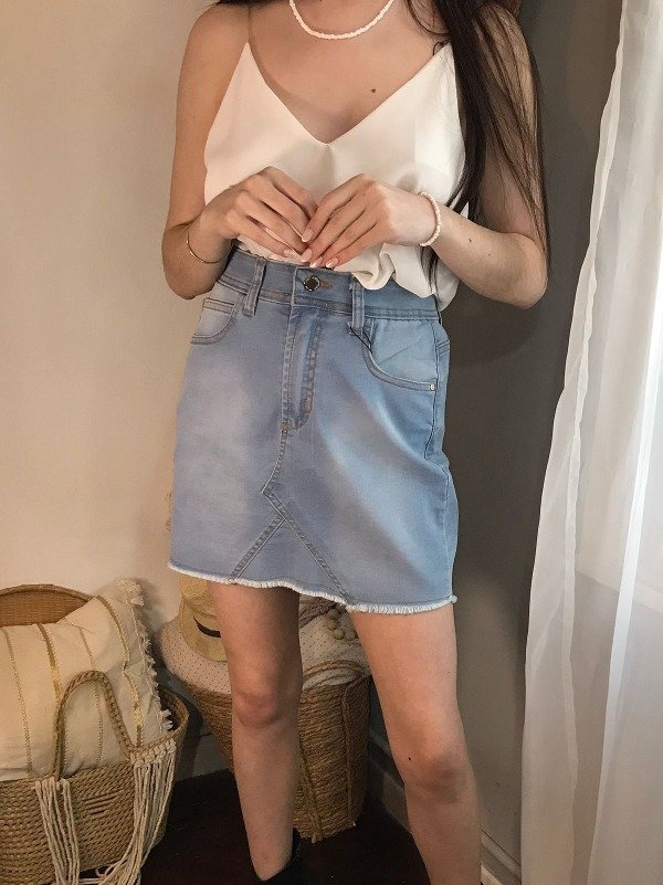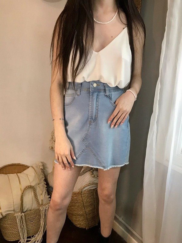 Pollera de Jean TUCCI, de tela elastizada, única disponible Talle 44.